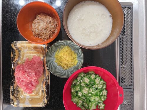 みなさんこんにちわ! 今回はパパがネバネバ丼に挑戦です!とはいっても、 材料を用意して盛り付けるだけ。とっても簡単です。 一番手間のかかるところと言ったら、山芋をひたすらすりおろすことくらいです。 材料 ☆とろろ ☆おくら ☆ねぎとろ ☆納豆 ☆たくあ…